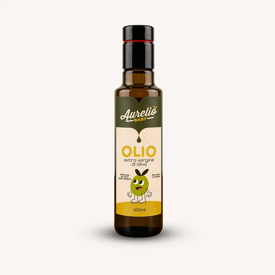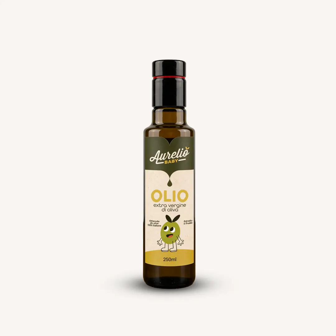 Olio Extra Vergine di Oliva Premium per l’Infanzia, selezionato per garantire la massima sicurezza e delicatezza fin dallo svezzamento.